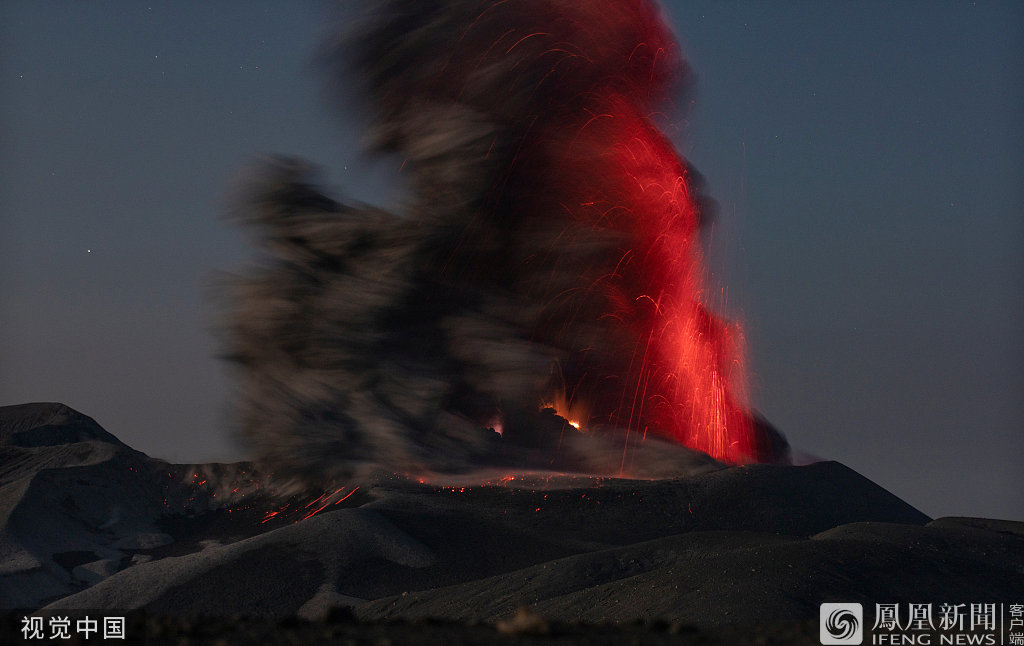 他当时站在离火山北部火山口大约一公里远的地方。这名火山专家说,图中显示的强烈闪电是一个非常罕见的例外,因为它比平常强烈得多。