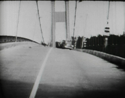 1940年11月7日,技术人员在7:30测得风速为38英里/小时,两小时后增强至42英里/小时,而此时的塔科马海峡吊桥,桥面波浪形起伏已达1米多。疯狂的扭动使得路面一侧翘起达8.5米,倾斜达到45度。