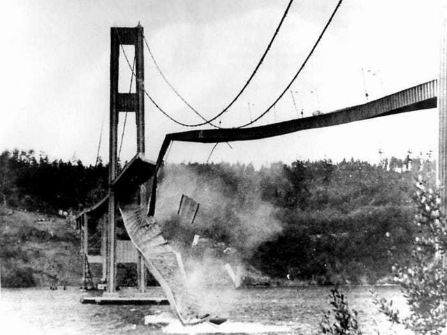 ▲塔科马海峡吊桥垮塌。图据《商业内幕》
