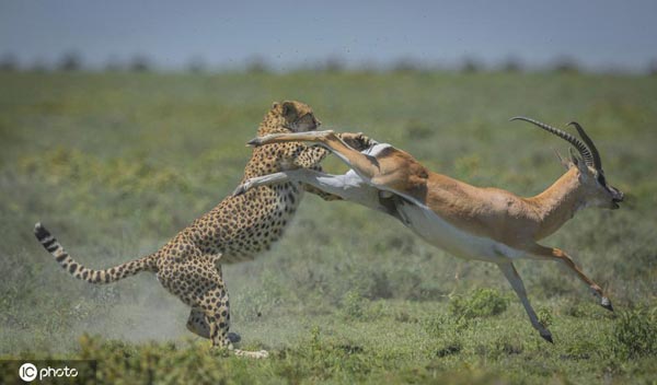 一头猎豹发现了一只瞪羚在随意漫步后,快速地靠近想要猎捕自己的美餐。但就在此刻戏剧性的画面发生了,这头猎豹好像是遇到了对手,因为这只瞪羚在它面前看起来一点都不软弱,瞪羚勇敢地和猎豹战斗,守护自己的性命。幸运地,最后这只瞪羚还真成功逃脱,让猎豹扑了个空。