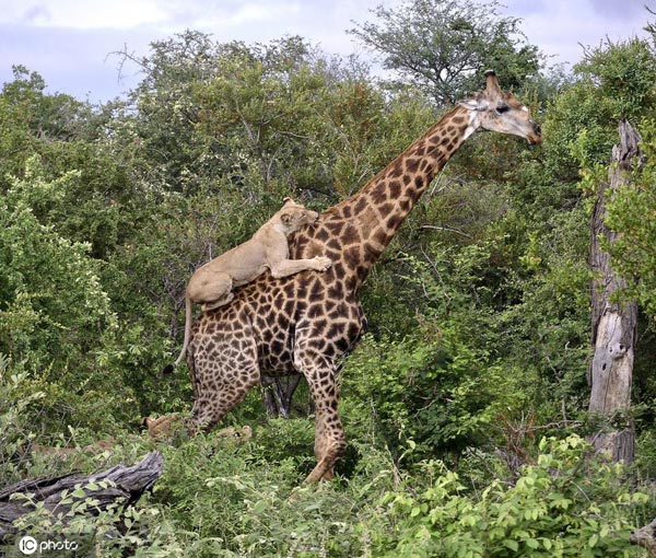 这只长颈鹿身上带伤,被六头饥肠辘辘的狮子盯上了,这些凶残的捕食者一拥而上,对势单力薄的长颈鹿发起进攻,最终,一头狮子成功跳到了长颈鹿的背上,开始狠命撕咬。虽然敌我力量悬殊,但长颈鹿没有坐以待毙,而是勇敢地奋起反抗,成功逃过一劫。