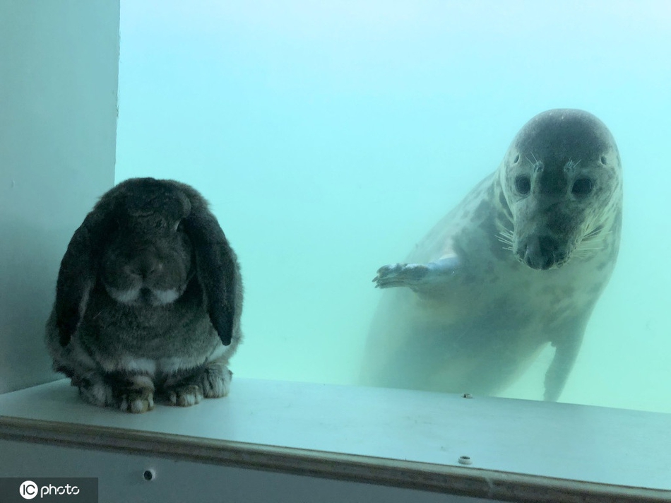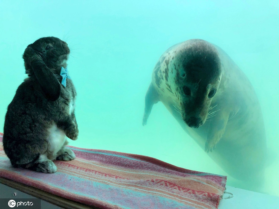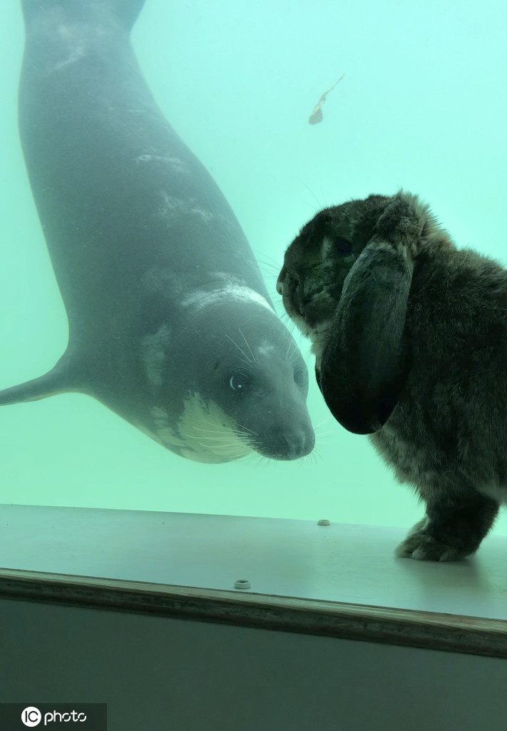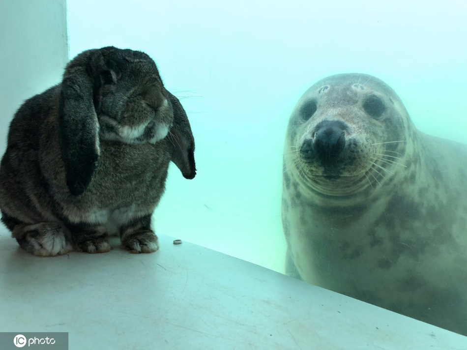 2020年3月17日报道(具体拍摄时间不详),原来物种隔阂也难以阻挡动物之间的友谊,这只名叫Ted的兔子,过去一年里经常和主人Emma-Louise Gallagher前往英国康沃尔郡的海豹保护区,对海豹产生浓厚兴趣,它们即使隔着玻璃,仍然无阻彼此的联系,热情地交流。