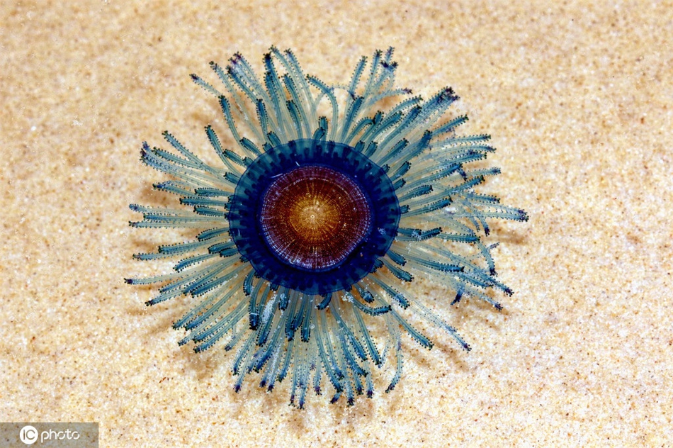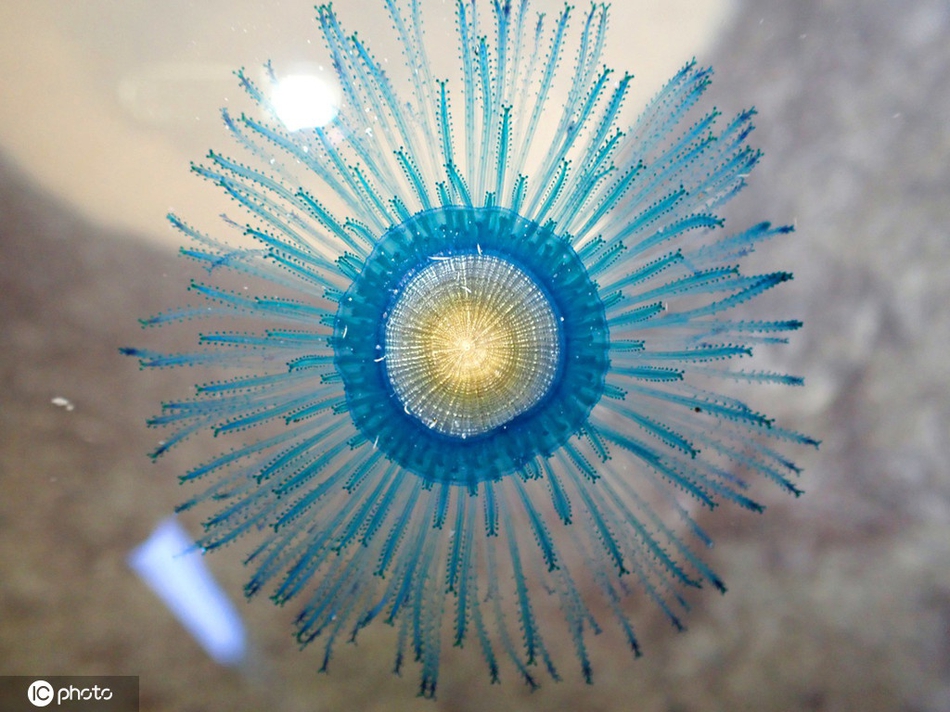 海洋生物学家劳伦斯-舍勒(Lawrence Scheele)在澳大利亚昆士兰彩虹海滩的一个潮池中偶然发现了它,porpita porpita,它是一种娇小而迷人的海洋生物,漂浮在小潮池中,身上有一种令人兴奋的蓝色。
