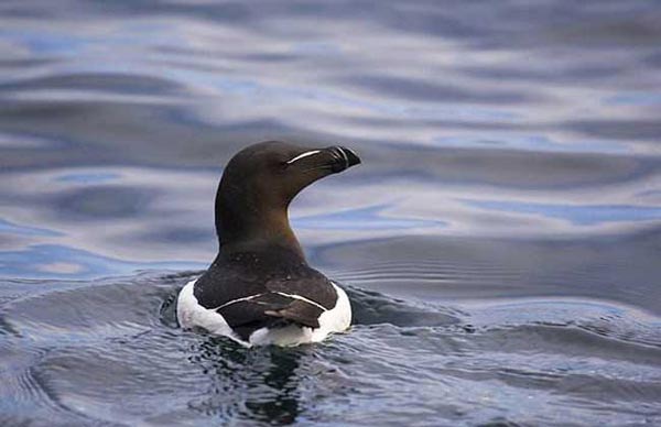 大海雀是一种不大会飞的水鸟,曾广泛生活在大西洋的各个岛屿上。虽然是水鸟,但其外观与企鹅很像,体型粗壮,腹部呈白色,头到背呈黑色。在水中的游动速度非常快,但由于双翼已经退化,只能在水面上低低滑翔,不能够飞行,在陆地上的行动也比较缓慢。因人类的大量捕杀,已于1844年灭绝。