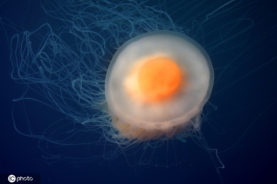 当地时间2010年11月22日,这个看起来是不是很像是早餐的荷包蛋,其实这是在地中海发现的水母,它的生存条件十分苛刻,需要充足的阳光,很难人工养活,不过瑞士巴塞尔动物园创造了一个适合这种水母生存的环境,并且一批这种小水母出生。图片是野生环境下的成年水母。