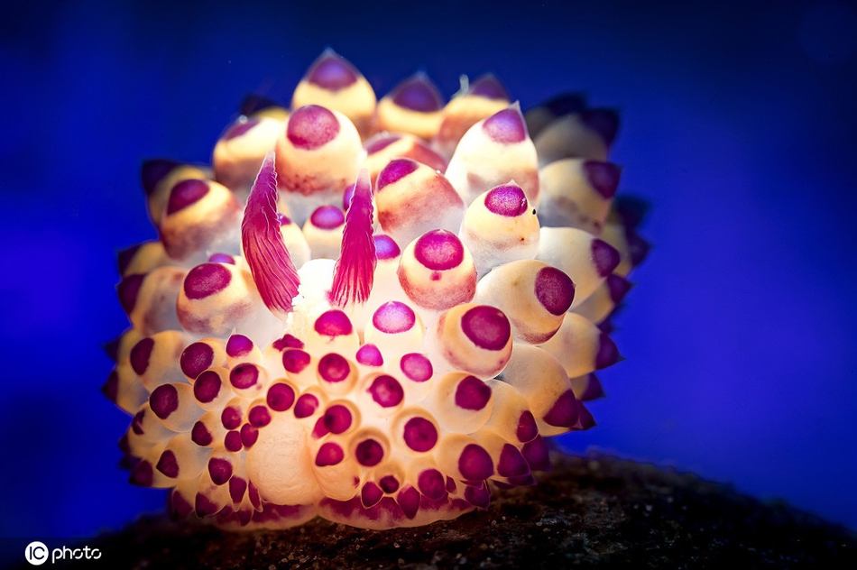2017年5月11日报道(具体拍摄时间不详),南非摄影师Adam Hanlon旅游印尼和挪威,在四个海滩胜地拍摄了一组瑰丽奇异的海蛞蝓照。