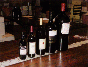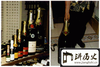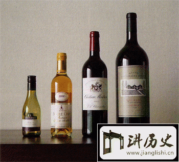 香槟酒瓶:从左至右分别为1/4酒瓶、1/2酒瓶、标准瓶、2标准瓶、4标准瓶、12标准瓶和16标准瓶(左图)。20标准瓶为最大尺寸的香槟酒瓶(右图)。(13)尼布甲尼撒(nebuchadnezzar):香槟型,20标准瓶,为15000毫升(15升)。四分之一酒瓶的葡萄酒一般是专为某种用途而灌装的,如飞机上;二分之一酒瓶是为餐厅提供的,但也被用于灌装餐后甜酒类的葡萄酒(贵腐酒、冰酒);巨大尺寸的香槟酒是为庆典场合营造气氛用的;大尺寸的波尔多型酒瓶则为葡萄酒收藏者所钟爱。当香槟酒选用非标准瓶,但不是梅格纳姆瓶时,香槟酒的第二次酒精发酵通常已不是在该瓶中进行,而是在标准瓶中进行,完成瓶中培养后再移灌到相应的大瓶或小瓶中。从收藏、陈酿角度看,酒瓶越大,酒能被保存的时间就越长,这是因为瓶中的空气相对较少。日常经验告诉我们,买东西时常有数量折扣,在国外买一箱葡萄酒通常有10%的折扣。但买大号酒瓶的、有档次的葡萄酒,如梅格纳姆尺寸的非但不比两标准瓶葡萄酒的价格低,还远比两标准瓶葡萄酒贵(视酒的名贵程度会贵30%一50%)。这并非瓶子的制造成本高,而是葡萄酒除了被享用外,还有收藏、投资的功能。保存时间长的葡萄酒,其生命周期就长,可被炒作的周期也长,价格自然也贵。2003年1月,在澳大利亚的一次拍卖会上,彭福茨公司的一瓶英裴利尔、1998年份的农庄酒被拍到54480澳元的高价;3个月后,在4月25日的拍卖会上,另一瓶英裴利尔、1998年份的农庄酒的价格更达71040澳元的新纪录。而同年份标准瓶的农庄酒其零售价只有400澳元。就量而言,一瓶英裴利尔相当于8标准瓶,但其价格却远远高出其量之比,平均每毫升葡萄酒要价是11.84澳元,一杯100毫升的葡萄酒就得花1184澳元。其中的投资炒作可想而知。