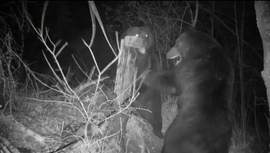 视频画面显示,两只熊面对面走近带刺的铁丝围栏,其中一只熊冲破铁丝网攻击另一只熊。两只熊开始打斗,导致铁丝和围栏杆损毁。视频日期显示,打斗发生在今年5月11日。