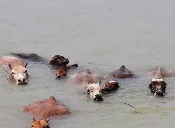 洪水来的时候,一般牛都会选择游泳到岸上,而且牛的水性也非常的不错。
