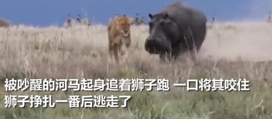 7月20日,国家地理杂志分享了一段有趣视频。一头狮子吃豹子胆戳醒午睡河马,随后惨遭对方一口咬住头狠甩,远处成群的斑马围观了这一幕。