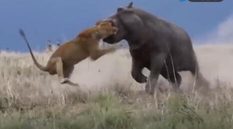 狮子吃豹子胆戳醒午睡河马 遭对方狠狠反杀全程被拍