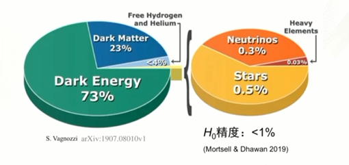 利用这些黑洞,我们还可以把宇宙里的物质组成照亮。有理论估计表明,如果哈勃常数测量达到1%的精度,我们还可以了解宇宙的物质组分。我们将可以知道,在4%的重子物质里面有多少是中微子和它们的质量是多少?