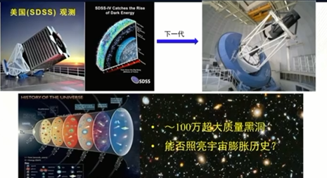 到现在为止,科学家从美国斯隆数字巡天(SDSS)中大约发现近50万个处于活动状态的超大质量黑洞。其实每个星系的中心都有一个超大质量的黑洞,它们处于休眠状态,在电磁波波段看不到。有这么多超大质量的黑洞,它们如何照亮了剧烈演化中的宇宙,又如何为翻开宇宙的历史打开一扇窗户?