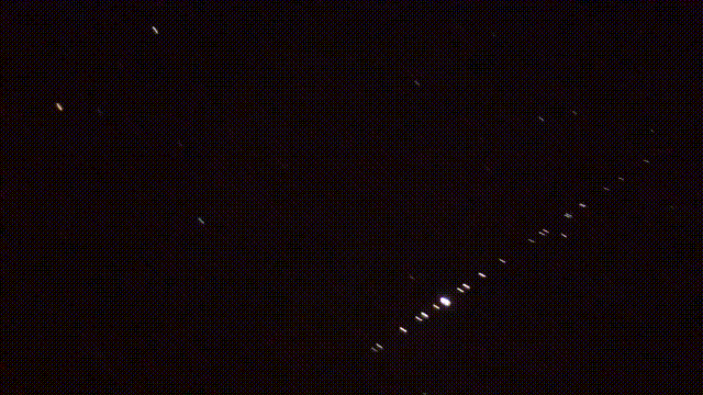 图5:天文爱好者拍摄到排成一列的星链卫星依次闪光,来源https://www.youtube.com/watch?v=cycLZQtM8HU