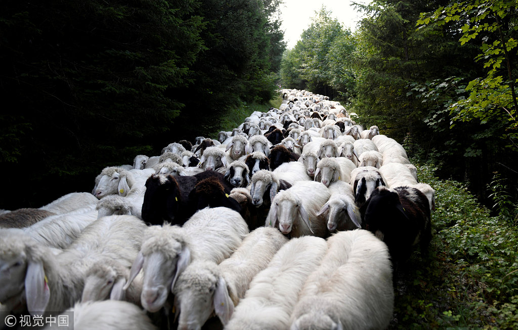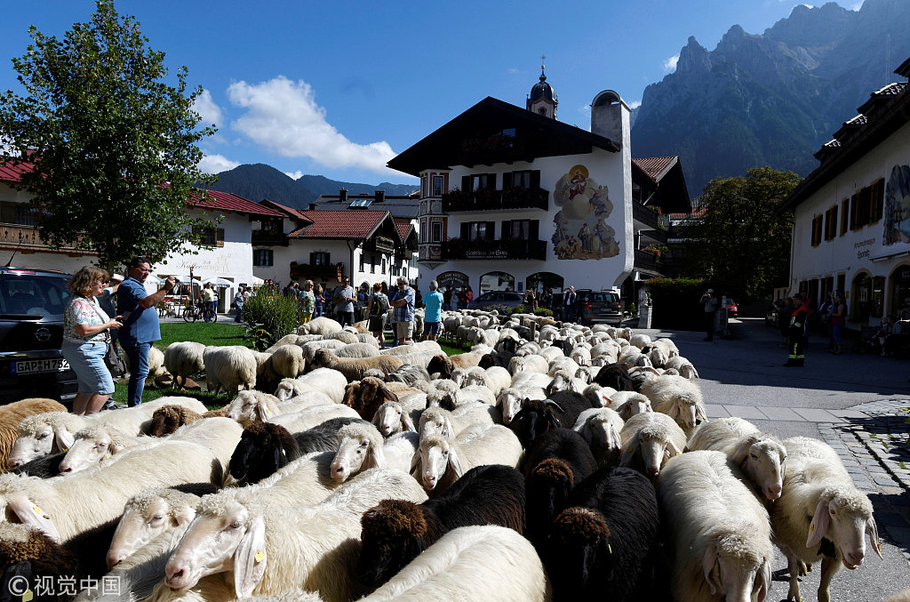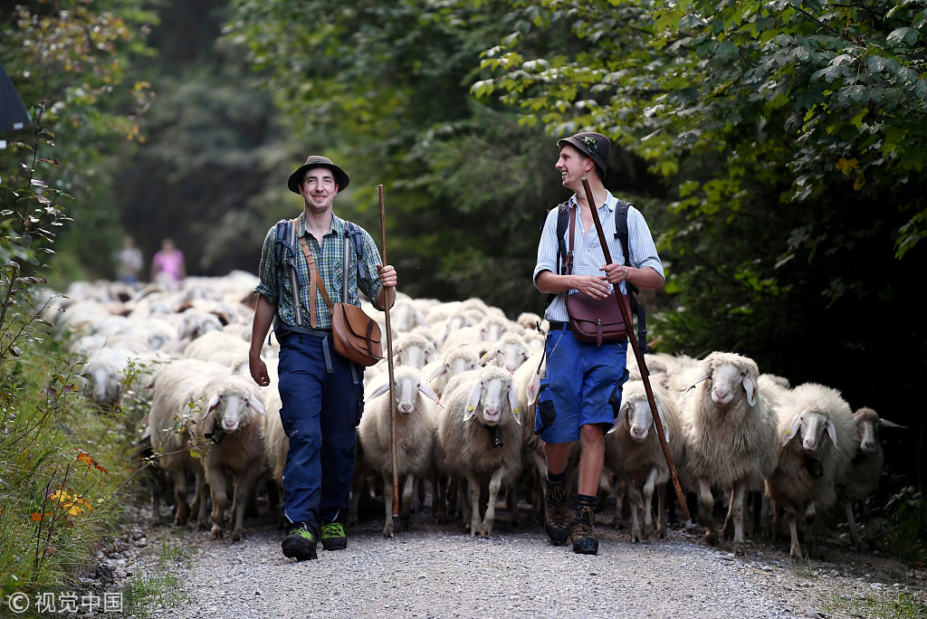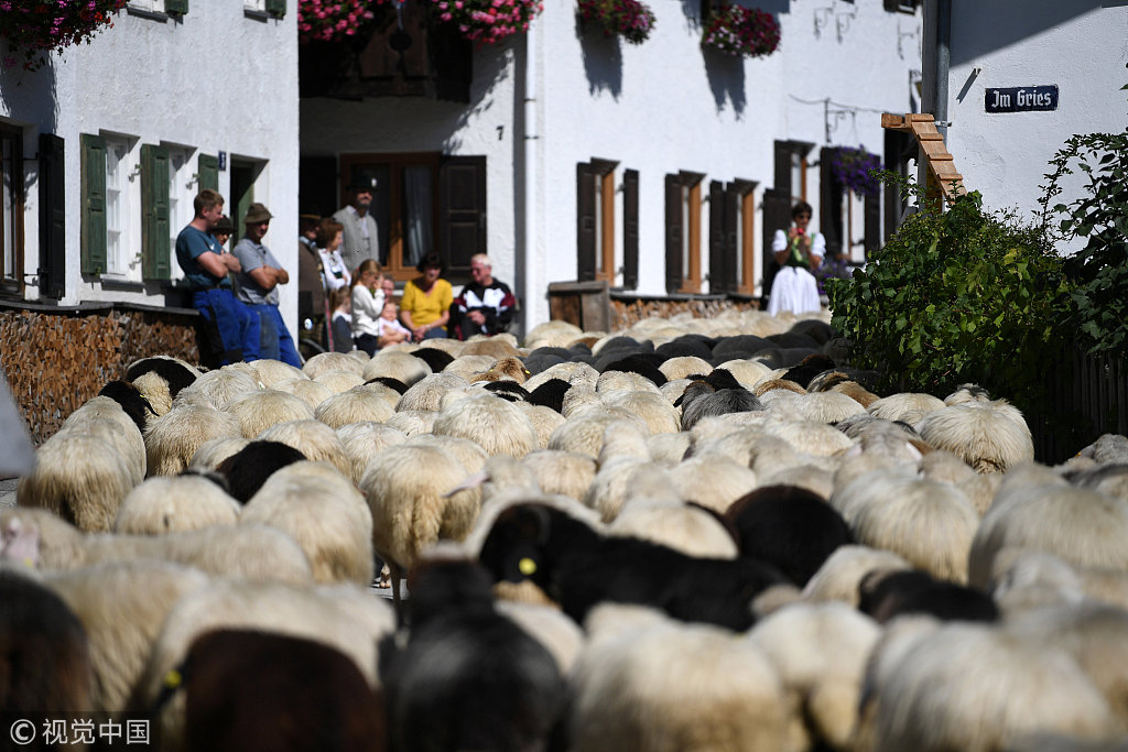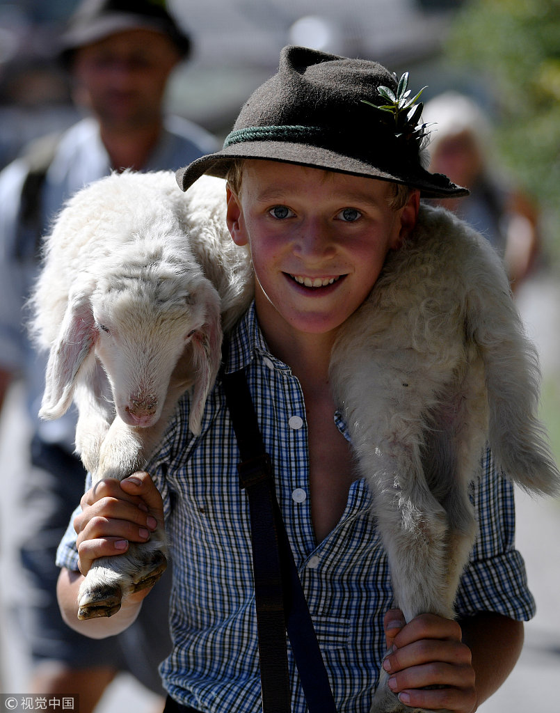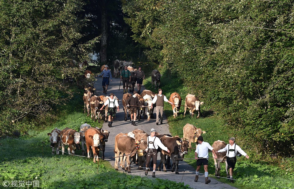 当地时间2018年9月8日,德国巴伐利亚州,当地牧民参加赶牛下山节。CHRISTOF STACHE /视觉中国
