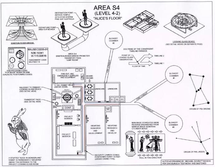 这些基地是在杜鲁门政府结束时建造的。那里有一个巨大的地下系统,其中的设施包括实验室,逆向工程的工作车间和外星人的生活区域。