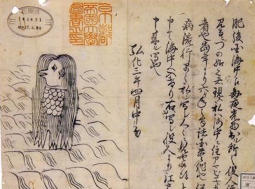 根据日本民间传说记载,人鱼是一种有魔力的生物,其不仅能将自己的眼泪变成珍珠,而且还有预知未来的能力。相传在19世纪的日本,人鱼的出现往往被认为是大丰收的象征;而天日子的出现则往往被认为将会发生瘟疫和灾难因此当时的人们为了获得好运以及辟邪便会将的人鱼画像挂在家中,甚至在今天的一些日本偏远乡村地区也依旧保留着这样的习俗。总之尽管日本历史上关于人鱼的形象通常都是正面的,但也传说显示,一些种类的人鱼则会幻化成溺水的美丽女子,从而引诱人们前去援救然后将其拖入水中杀死。