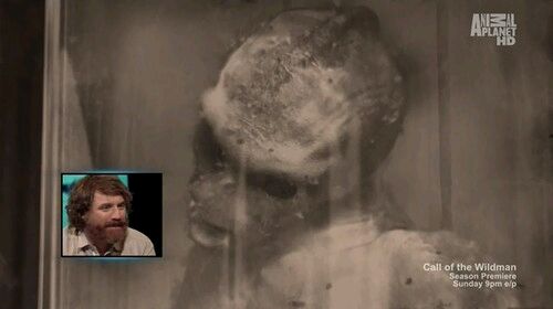 探测船到达沉船位置,为了能更清楚看到沉船的正确位置,他们放下水中摄影机并且沿着海底移动,突然一个鬼魅似的黑影出现在镜头前,所有的人张口结舌地看着屏幕,不敢相信自己眼睛所看到的影像。没错,这个怪物是一只鱼,但更像一个小孩,有鳃,皮肤上也有鳞片。他游向摄影机,用一双淘气的眼睛望着摄影机,但随即又蹦开了。