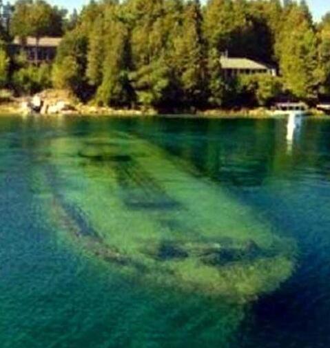 这艘沉船位于水下6米深的地方,但是从表面仍然清晰可见。