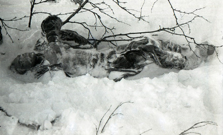 他们死亡时的姿势,表明他们可能正在试图极力逃回营地。他们的尸体分别在距离红松300米,480米和630米处被发现。