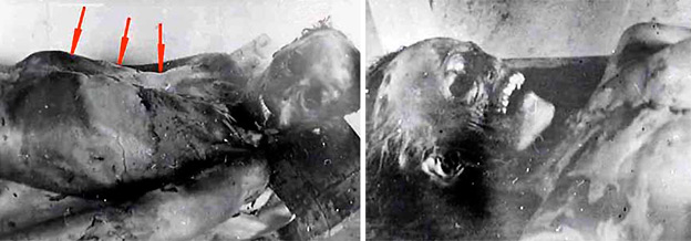 其次,据说尸体遭到了军方人员的移动和翻转,以造成假象误导调查者。因为尸体身上积雪的覆盖程度和降雪量似乎并不吻合。尸体身着的衣服被特殊试剂洗涤过,而且彼此之间的衣服还弄错了。此外尸检的报告从来都不完整。