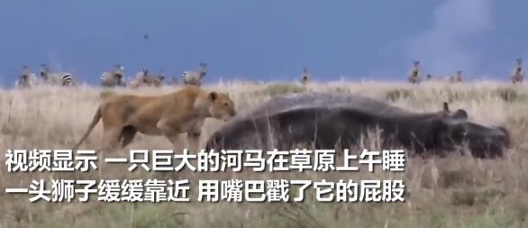 狮子吃豹子胆戳醒午睡河马 遭对方狠狠反杀全程被拍7月20日,国家地理杂志分享了一段有趣视频。一头狮子吃豹子胆戳醒午..