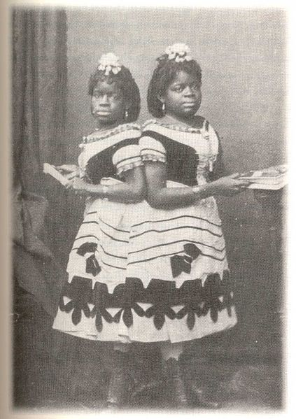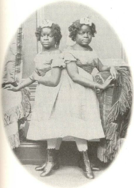 1871年,Millie和Christine McKoy双胞胎在美国费城。她们出生于1851年的7月11日,在脊椎基部相连。