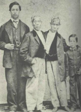 昌(Chang)和恩(Eng)邦克(Bunker)的画像,时间大约是1835年或1836年。在所有连体双胞胎中,这对双胞胎或许是最有名的。1811年的5月11日,他们出生在泰国暹罗夜功府