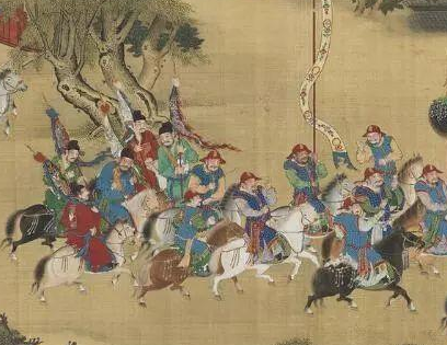 图4 明代《出警入跸图》图中前面的是皁纛,后面就是幡(招摇)在“八王之乱”中,妖后贾南风假借驺虞幡的权威,解散了楚王司马玮的大军,顺利将其诛杀。贾南风***后,晋惠帝司马衷能力低下,无法掌控西晋乱局。永宁二年(302年)五月,河间王司马颙(读yóng)擅立太子,引起诸王不满,长沙王司马乂(读yì)起兵发难,司马颙欲再次借用驺虞幡造势,结果遭到反杀。象征皇权的驺虞幡随着皇权式微,也走向了没落。