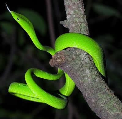藤蛇是一种特别瘦长的蛇,长着一个呈明显尖利的三角形的脑袋和过度向外杰出的鼻子。尾巴十分幼长。这种蛇的根本色彩是绿色,也有黄色、橙色、灰色及棕色,它们身体上的体纹以黑色或白色