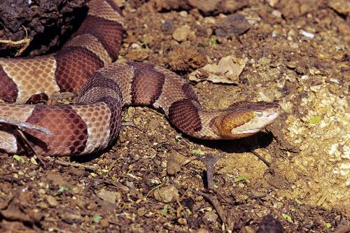 铜头蝮蛇是一种中型毒蛇,而且其毒液也不是很强,只要咬伤后能治疗好就没事。为什么把铜头蝮蛇放在世界上攻击性最强的蛇排行榜呢,这是因为其也是性情暴躁,受到骚扰会毫不犹豫的攻击。
