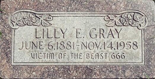 在美国犹他州盐湖城有一个不起眼的神秘坟墓,其主人是在1958年去世的莉莲格雷(Lilly E. Gray)。尽管这个坟墓乍看之下非常的朴素,葬着的人也不是什么名流之士,但如果仔细看可以发现其墓碑中还刻了一行奇怪的文字VICTIM OF THE BEAST 666,翻译过来就是怪物666的受害者;而根据医院的死亡记录显示,莉莲实际上是自然死亡的,并没有遭到他杀那么她坟墓上的这段文字究竟是想表达什么呢?这至今在盐湖城当地也仍是一个未解之谜。