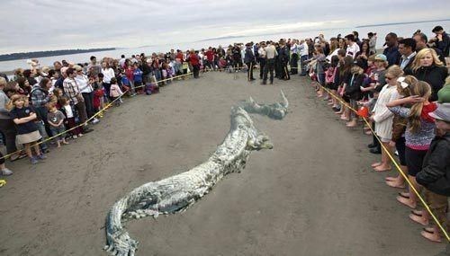 2013年一具不知名海洋生物的尸体,在西班牙维拉雷科斯Luis Siret海滩被发现。使海洋学家和其他专家困惑的是,它看上去像是某种巨型海蛇,前额上的一对角使它像是神话里的生物,出现在现实生活中。有人认为它是鲨鱼骨架,被误认为是角的不过是支撑胸鳍的骨骼。还有人认为它可能是一条巨型皇带鱼,虽然皇带鱼头部的器官和它的角不大相同。