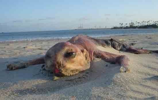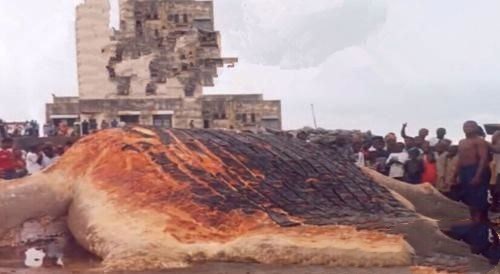 2007年一个奇怪的生物被海水冲上了几内亚的海岸,这一生物也被称作巨型神秘海龟。有人把它形容为巨大的蜥蜴形怪兽,皮肤和后背有鳞甲,有一条长尾巴和四个爪子,由于皮肤表面发黑,有人认为它被烧过了。据说前来调查的科学家们称他们曾经见过这种动物,但他们无法断定它是什么生物。也有人认为它是腐烂的猛犸象,或是巨大海龟,或是沧龙等其他巨型两栖动物的尸体,而它的鳍状器官也使许多人猜测它是一具高度腐烂的须鲸尸体,后来尸体神秘消失了。