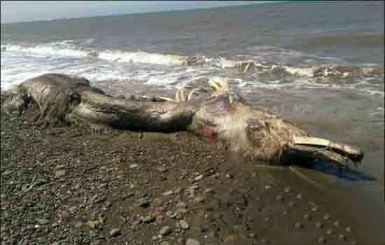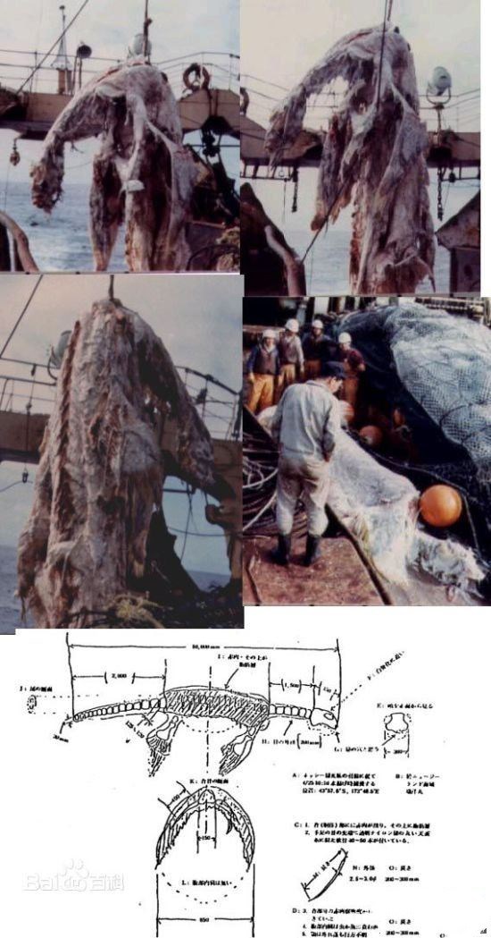 2013年一艘伊朗巡逻船在波斯湾南帕斯执行任务时,发现了一些不寻常的东西。船员发现在石油钻井平台附近漂着一个他们从来没见过的生物,但这艘船无法把这具庞大神秘的尸体拖回岸上,于是这些照片成了唯一资料。 直到几年之后的今天,人们仍然对这个怪兽是什么,意见纷纷。虽然生物学家认为它是鲸鱼尸体,依然有人认为它是怪兽或类恐龙的灭绝生物。