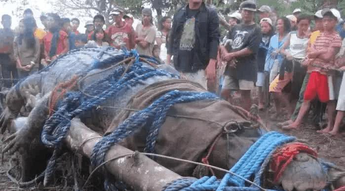 3、菲律宾巴纳望小镇有一个孩子被一条鳄鱼吃掉,而不久又有渔民失踪,甚至有村民们还目击这条大鳄鱼进击并吃掉了一头水牛。
