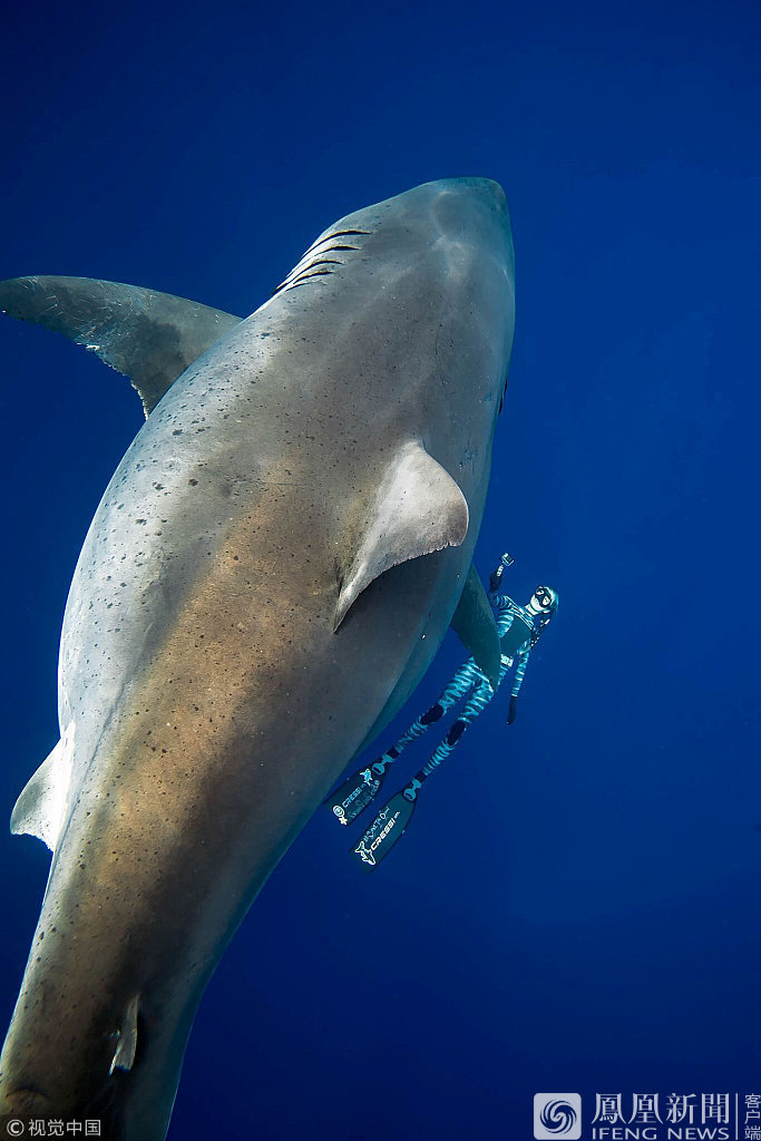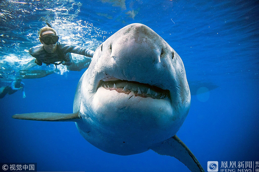 大白鲨狰狞嗜血的形象深烙于电影作品,世人多数对其敬而远之。美国女潜水员拉姆齐(Ocean Ramsey)与其同伴周二(1月15日)在夏威夷外海期间,与一条被记录为全球体形最大的大白鲨狭路相逢。当时它正把一条死鲸鱼当作佳肴进食,不过众人非但没有害怕,反而与大白鲨酣畅淋漓地戏玩了一整天,并把事迹上传到网上分享。