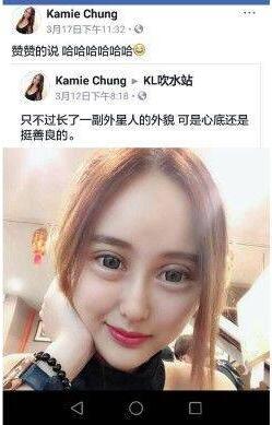 对于网友的调侃,Kamie Chung倒是很淡定,她表示只不过长了一副外星人的外貌,可是心底还是挺善良的,她这段回击网友的言论获得了超过5000个赞、1800多条留言。