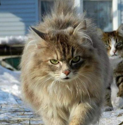 缅因猫,毛发比较浓厚,这种猫咪虽然对自己的家人和主人比较温顺,但是在野外,就像一种超级的猎手一样,这种猫咪有浓厚的猎性,经常会出入一些当地的森林,它们释放出的杀伤力,绝对是当地小动物的天敌,猎杀的技巧就像原始的猫科动物一样,迅猛而用犀利!