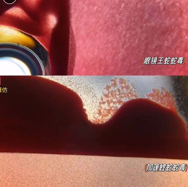 这是因为蛇毒和血液发生了溶血反应,短短几秒,血液就被蛇毒破坏了。