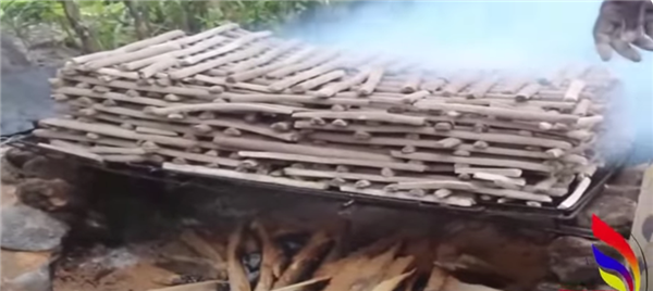 之后人们会在土里面加入一些调味料(例如盐和黑胡椒),加水调和并搓揉,最后制成一根一根的,放在火上烘烤。