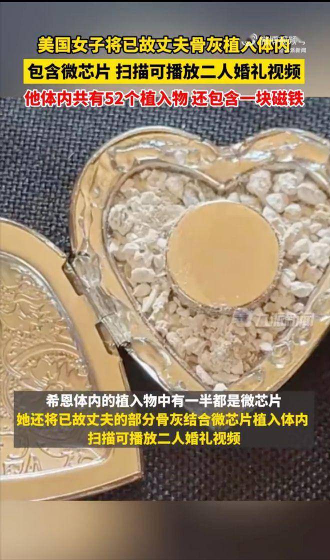 美国女子将已故丈夫骨灰植入体内 包含可扫描微芯片
