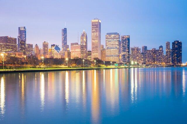 密歇根湖是北美五大湖之一,面积排名第三位,也是唯一全部属于美国的五大湖之一。其水域面积为57757平方公里,平均水深84,米蓄水量达到了4918立方千米。