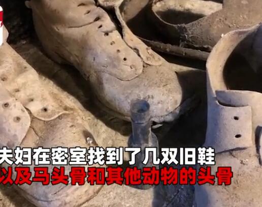 近日,英国。据外媒报道。一对夫妇继承了一座16世纪的房屋,她们准备翻新时,却发现楼梯某处是空的,撬开一看发现一个密室,进去一看只觉毛骨悚然。夫妇在密室找到了几双旧鞋以及马头骨和其他动物的头骨,装满不明液体的瓶子,和一顶似乎是被吃了一半的帽子等其他物品。夫妇认为这些物品是在巫术中使用的。最终,夫妇将这些东西放回了原处。