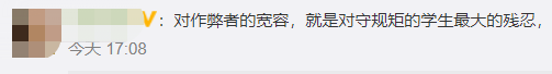 怎样看待考试违规现象?有网友表示:对作弊者的宽容,就是对守规矩的学生最大的残忍。