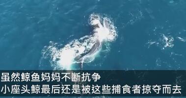 最后小座头鲸惨遭了毒手,一旁的妈妈只能眼看着自己孩子被杀害