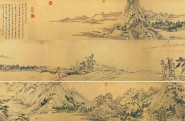 此后,《富春山居图》几易其手,并且曾被烧成两段。如今,它的前段被重新装裱后藏于浙江省博物馆,称为《剩山图》;后段现藏于台北故宫博物院,称《无用师卷》。