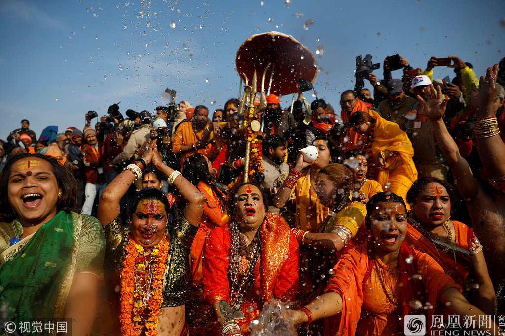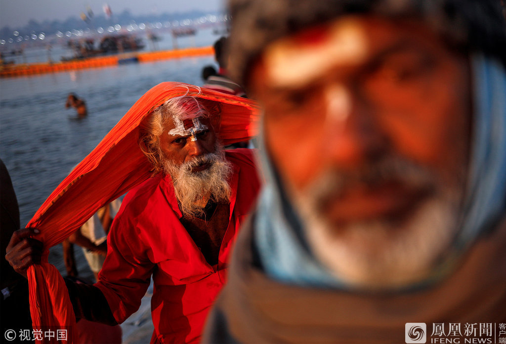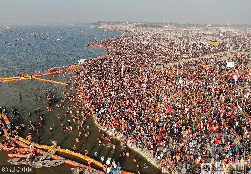 1月17日报道,当地时间1月15日,印度北方邦阿拉哈巴德,印度大壶节(Kumbh Mela)拉开帷幕,信徒聚集在桑伽姆(Sangam)河中进行圣浴。