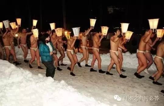 日本唯一一个真正的裸体祭黑石寺苏民祭是日本三大裸祭之一,也是日本唯一一个真正的裸体祭。每年2月中旬左右,日本东北岩手县的黑石寺便打破了往常的寂静,四周灯火通明、万头攒动,为的就是要参加由22时开始通宵进行的黑石寺苏民祭。参加祭祀仪式的全是男人,称作苏民,他们会全身裸露或只穿着丁字裤,在这天以身体力行克服严寒,祈求新一年的丰盛和平,也保佑子孙平安。