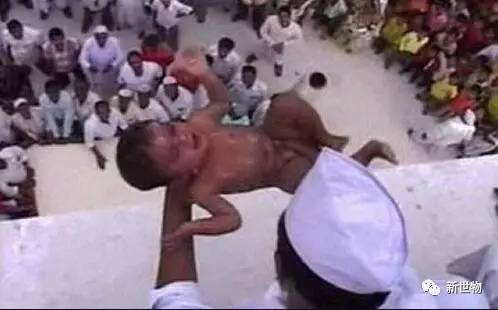 从高处将婴儿摔下。这种习俗发生在印度的穆斯林或者印度教的信奉者中。人们将2岁以下的婴儿从楼上摔下来,下面的人们用手接住孩子。人们认为这样的仪式能够给他们和孩子带来好运,可是这项仪式的危险性实在太高了。